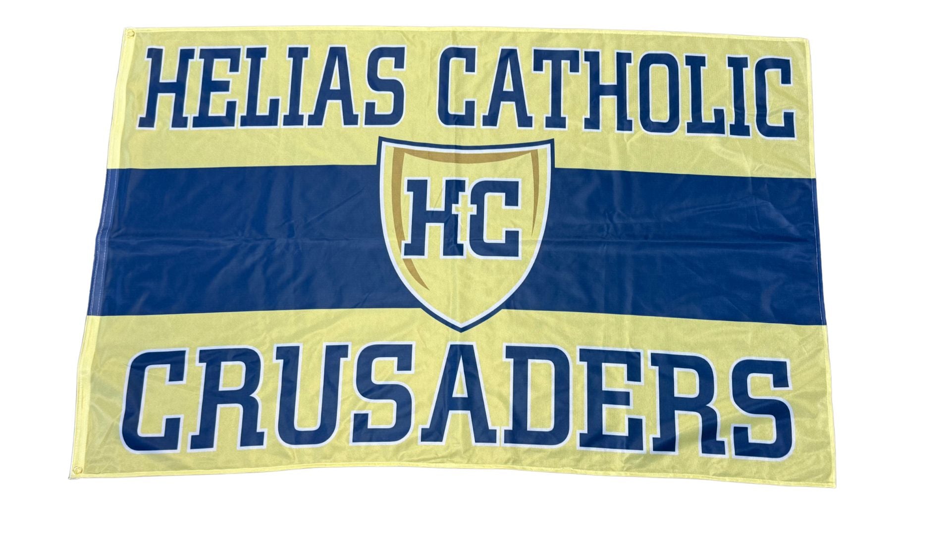 Helias Catholic Crusaders 3x5 outdoor flag with logo.